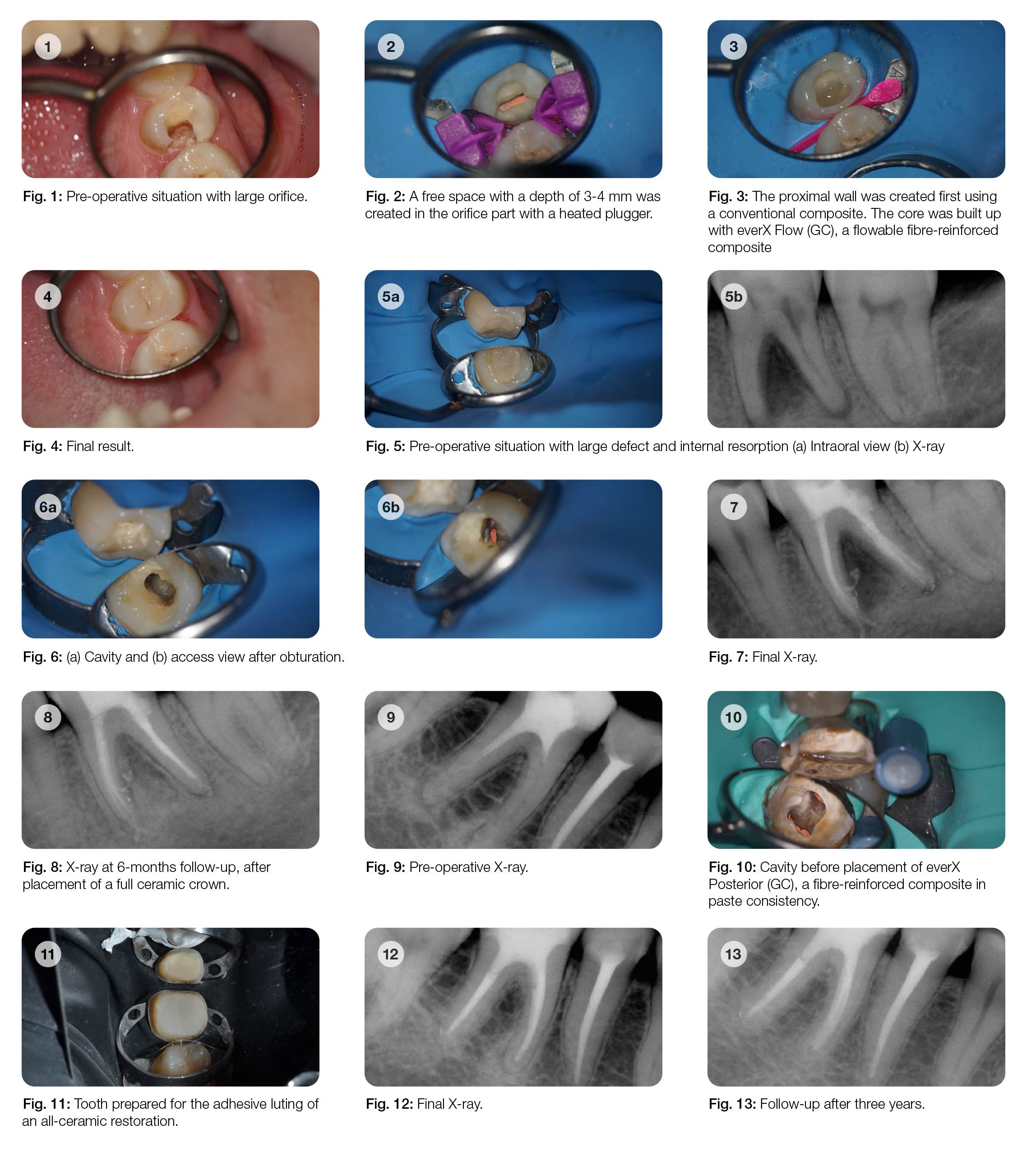 Endodontically treated molars with conservative access do not require post. Of course final treatment does not only depend on access type but also size depth cavity Here FRC have also proven their worth indicated cases internal resorptions (Figs 5-8).