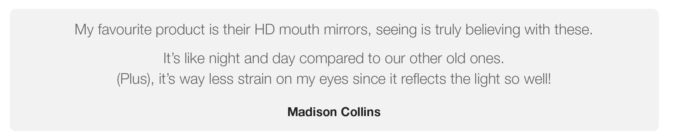 Feedback from dental practitioners who have incorporated the Crystal HD Mirrors into their practices consistently highlights improved durability, superior ergonomics, enhanced procedural efficiency, and greater patient comfort.