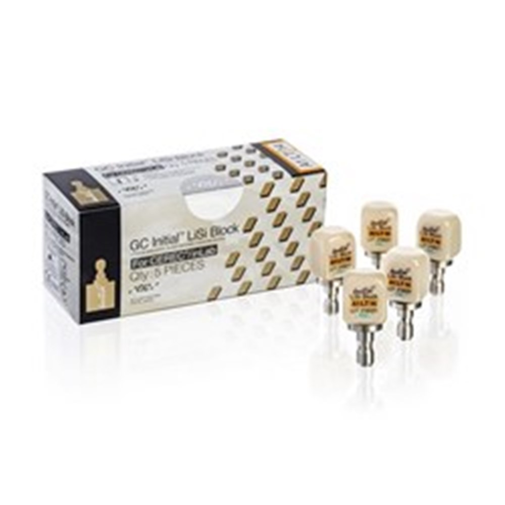 Initial LiSi Block is a fully crystallized lithium disilicate block that delivers optimal physical and aesthetic properties without firing. 1-6 This unique block features GC’s proprietary High Density Micronisation (HDM) technology for CAD/CAM dentistry to deliver high wear resistance, smooth margins and aesthetic final results. 1-6 This makes it an ideal time saving solution for single visit chairside treatment.
