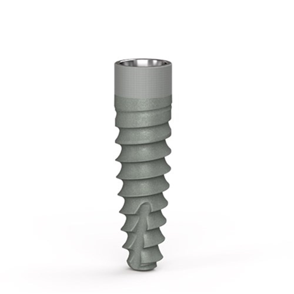 Flat implant shoulder designed to reduce vertical discrepancy by allowing restorative components to sit on the implant shoulder preserving the conical connection for final abutments