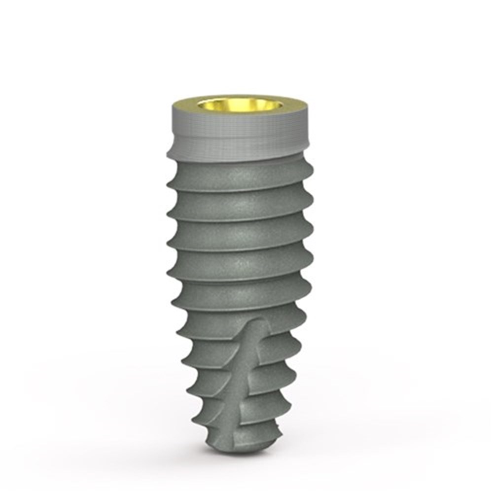 Flat implant shoulder designed to reduce vertical discrepancy by allowing restorative components to sit on the implant shoulder preserving the conical connection for final abutments