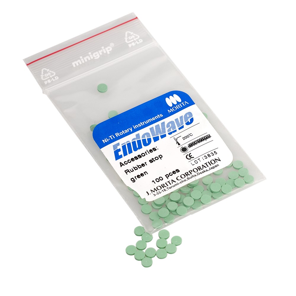 Autoclavable silicone endodontic stops designed to match colours for quick identification of EndoWave taper sizes