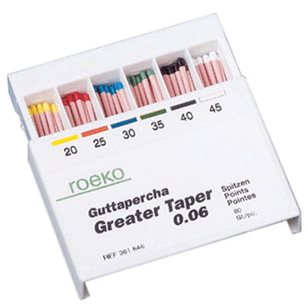 Designed for obturating root canals which have been prepared with nickel titanium tapered rotary instruments. At the tip of the point (d1) the diameter corresponds to the ISO sizes, but then the conicity is greater than the ISO points Taper 4%/0.04 Box of 60"