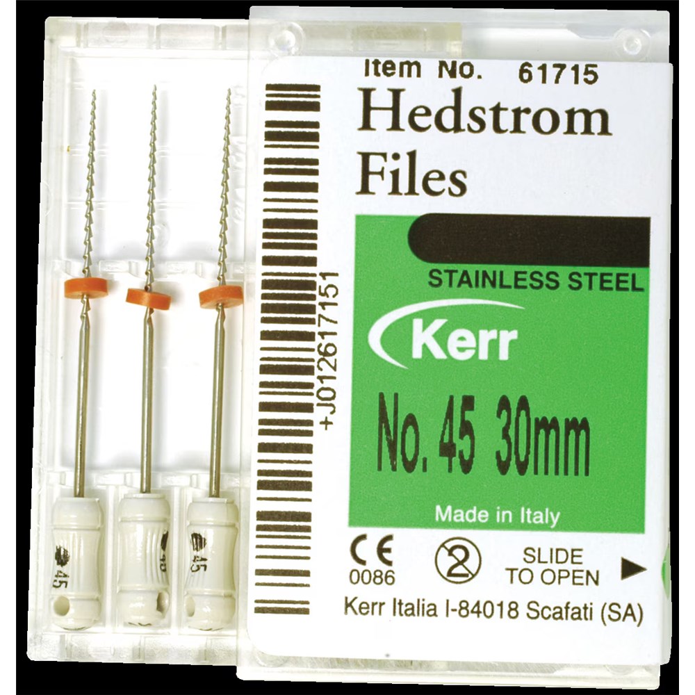 K-Flex™ Files feature a unique rhomboid design, which provides a short axis for flexibility while maintaining crosssectional strength. K-Flex is more flexible than conventional “K” files of comparable size, particularly in sizes #30 and above, which facilitates the negotiation of curved canals and their preparation with minimal potential for ledging and perforating.