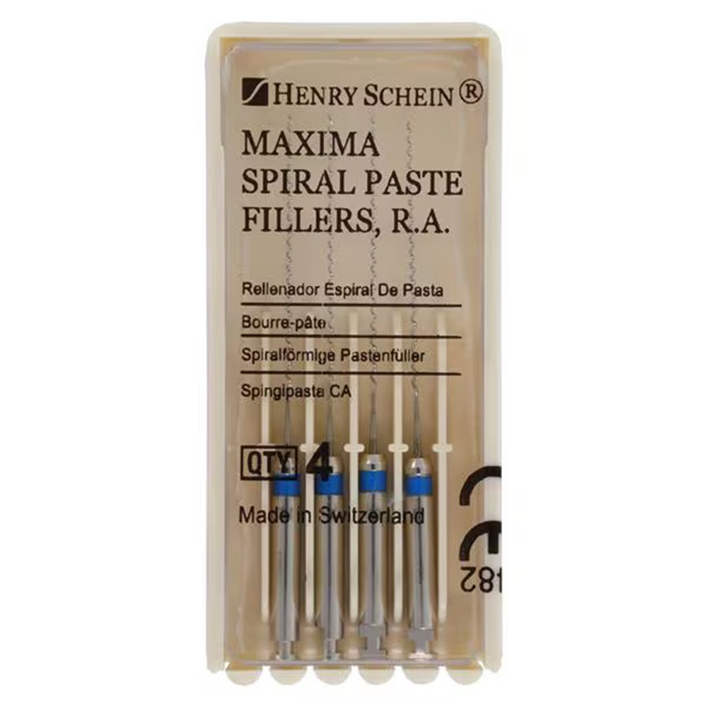 Used to carry root canal cement apically in clockwise rotation after there has been a mechanical preparation of root for treatment. Colour coded rings for easier identification. Wire is founded in a conical shape and then formed into spirals with a tapered design. Stainless steel. Made in Switzerland 25mm Pack of 4"