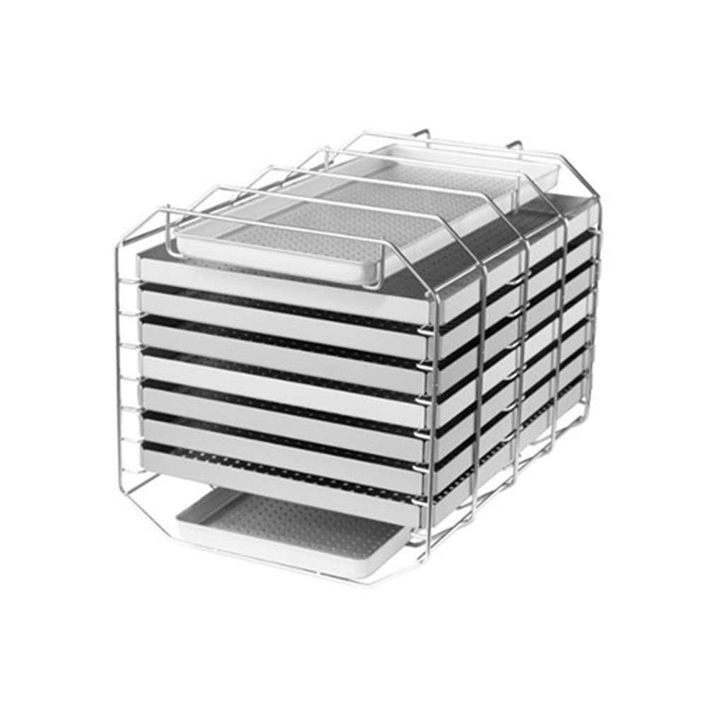 The loading drawer with the mount Comfort offers maximum capacity and ergonomics for the sterilization of instruments on up to 16 trays.