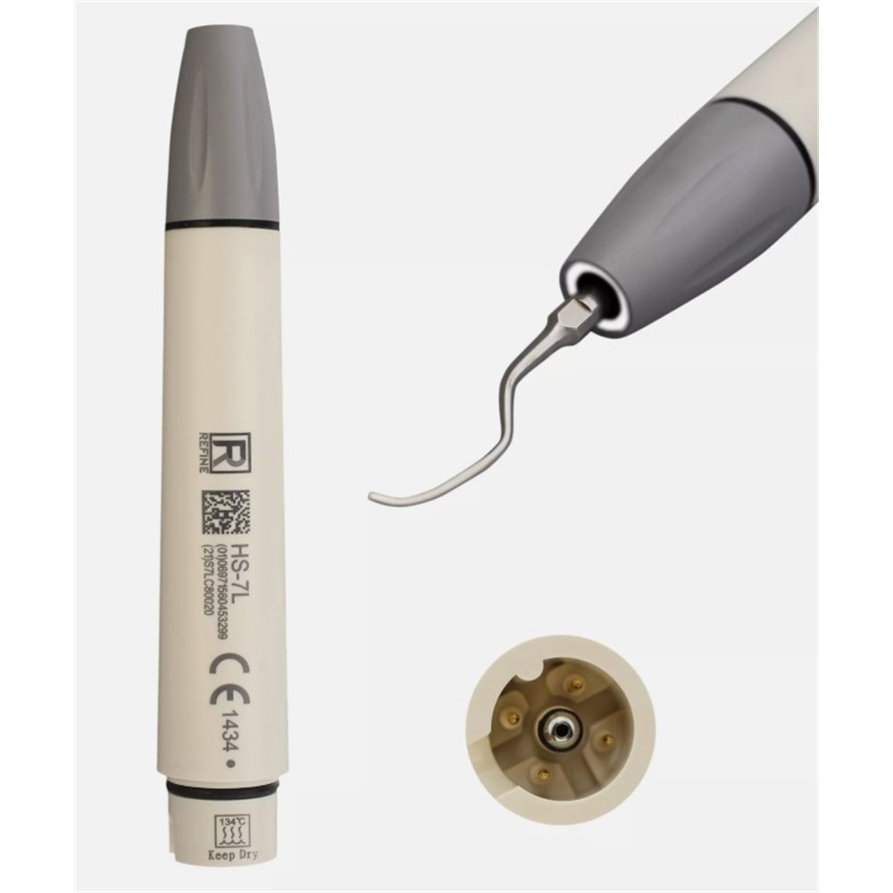 The Acteon Newtron LED handpiece (F12609) is a high-performance ultrasonic dental scaler designed for use with Acteon/Satelec Newtron units. It features an integrated LED light at the tip, providing bright, focused illumination for improved visibility in deep or hard-to-reach areas, which enhances precision during scaling, periodontal therapy, and implant maintenance. Utilizing piezoelectric ultrasonic technology, it delivers efficient, linear vibrations that remove plaque and calculus gently, increasing patient comfort. The handpiece is ergonomically designed to be lightweight and slim, reducing clinician fatigue during extended procedures, and is autoclavable for strict infection control, with some models allowing the LED module to be removed for sterilization. Additionally, it is compatible with a wide range of Acteon/Satelec ultrasonic tips, making it versatile for hygiene, periodontal, implant, and restorative procedures. Overall, the F12609 combines visibility, precision, and comfort in a durable, professional-grade handpiece.