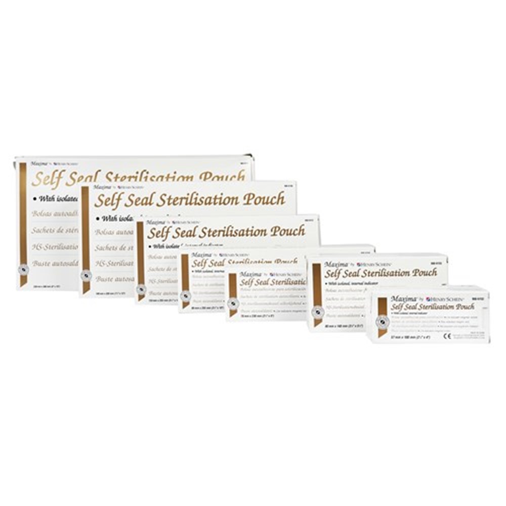 Maxima Self Seal Sterilisation Pouches are for packaging dental instruments prior to sterilisation and storage once sterilised. These pouches have an external and isolated internal indicator for accurate reading. Designed to indicate that instruments have undergone sterilisation.