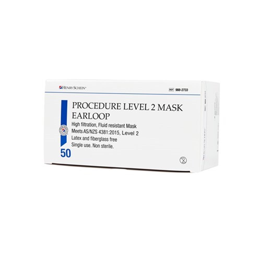 Henry Schein Level 2 Mask Earloop Blue Box 50