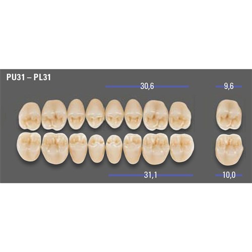 Basic posterior teeth with multifunctional occlusal surfaces made of HC polymer.