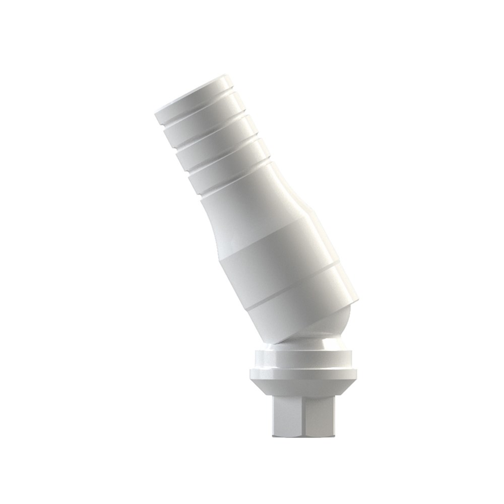 It is made up of two pieces connected together by an elbow that works as a joint, while the chimney pivots on the semi-spherical base. The Dynamic Abutment® system can rectify any angulation issues with millimetric precision up to 28º with full freedom of movement.