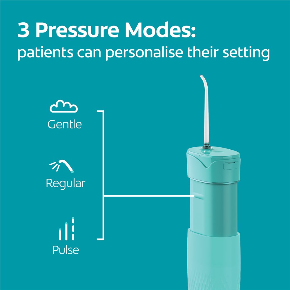 Its uniquely patented, compact and portable design, combined with easy to use controls will encourage your patients to clean their in-betweens and achieve a cleaner feeling than brushing alone. The Blast Flosser has been designed to be simple and effective for people who are new to water flossing with its easy power flossing that’s good and gentle for gums.