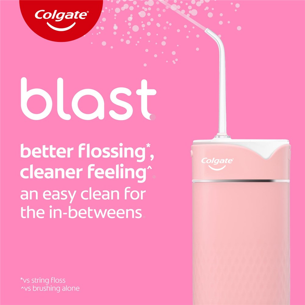 Colgate Blast Cordless Water Flosser provides better flossing* for a cleaner feeling**. It gives you the easy clean for all those tricky in-betweens in your mouth and along your gums.
