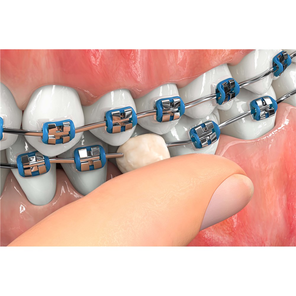 Gishy Goo material is a specially formulated polyvinyl siloxane elastomer that helps patients get comfortable with orthodontic appliances such as brackets, lingual braces, molar tubes, fixed and functional appliances, mouthguards, and other applications where soft tissues can be protected.