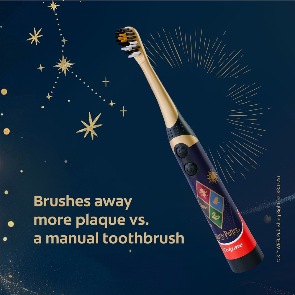 The Colgate Kids Powered Extra Soft Toothbrush provides a magical clean for young witches and wizards: