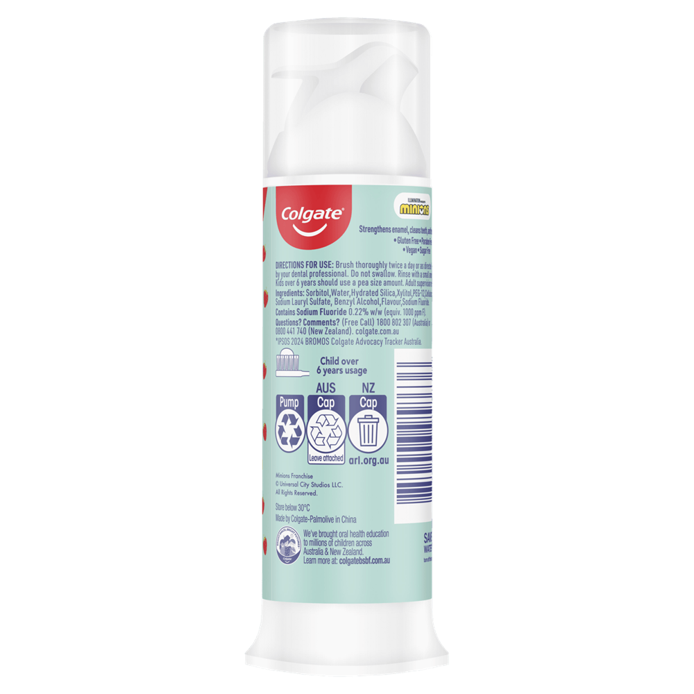 Colgate Kids Minions Pump Strawberry Toothpaste 85g x 6